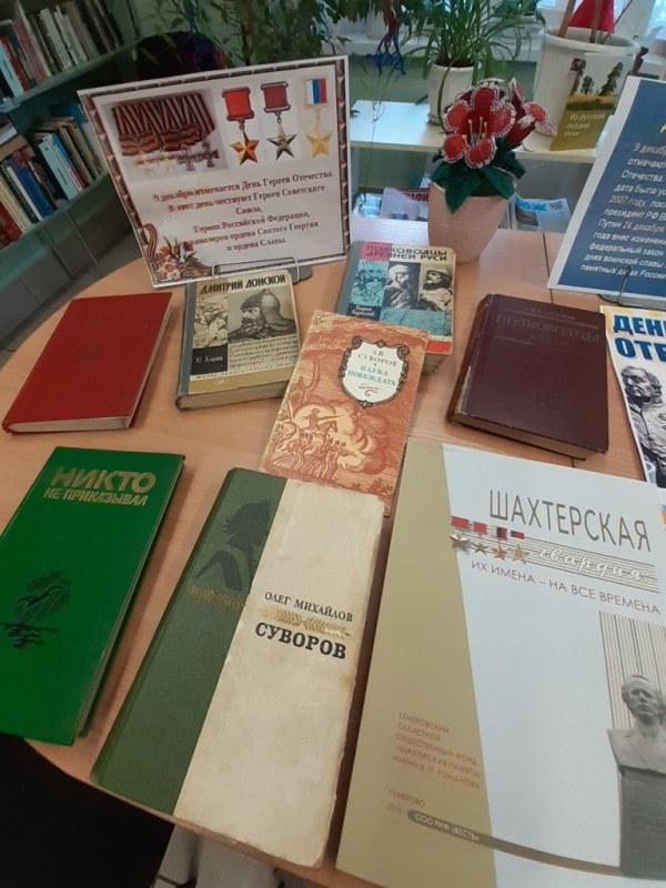 Ко Дню Героев Отечества в библиотеке «Центр национальных культур» оформлена выставка «Герои живут вечно».