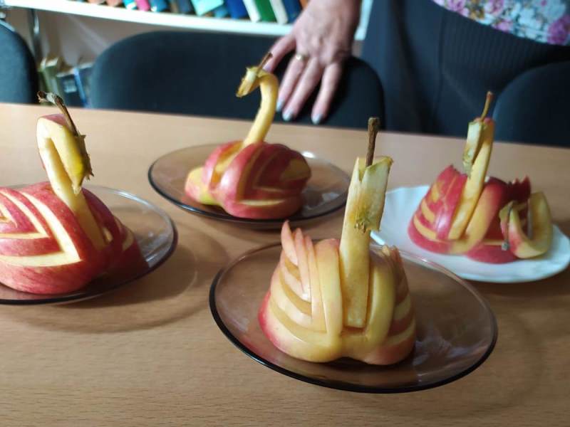 Галина Ивановна Шелепова показала, как делать лебедей из яблок.