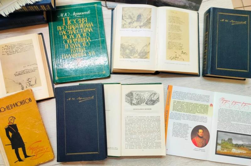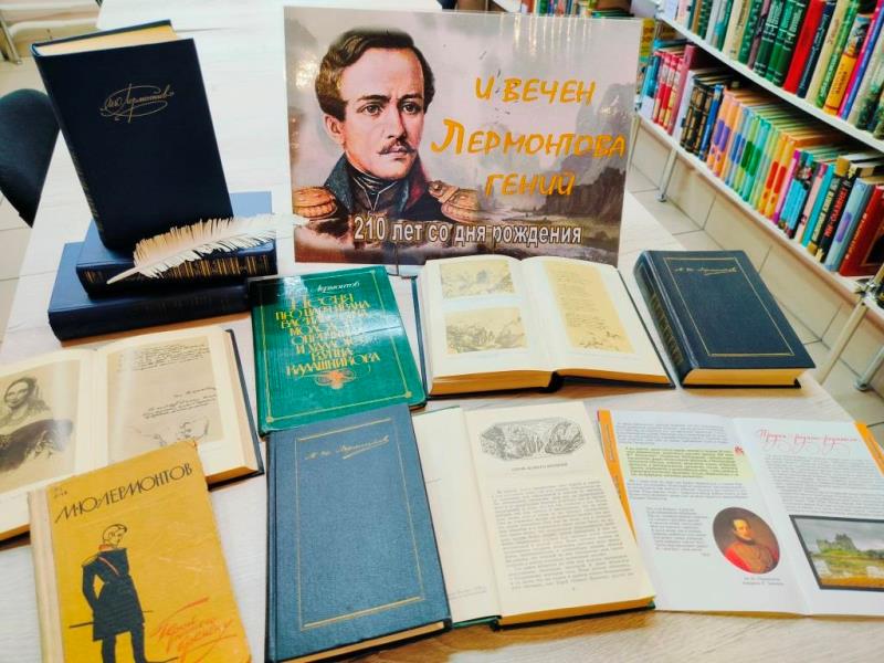 В библиотеке «Центр национальных культур» оформлена выставка-портрет «И вечен Лермонтова гений», приуроченная к 210-летию М.Ю. Лермонтова.
