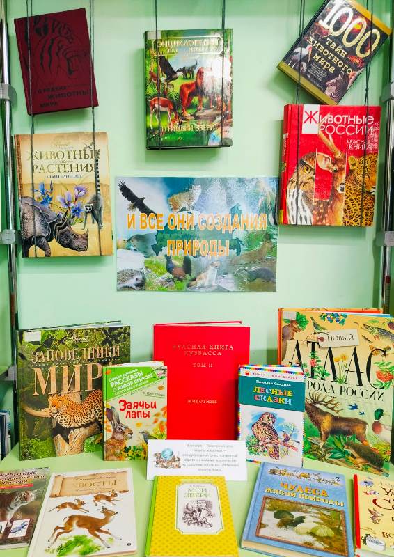На выставке представлены научно-популярные издания о животных из разных стран и континентов, а также «Красная книга России», страницы которой стремительно увеличиваются. А также художественные произведения, героями которых являются животные. Предложенная литература является не только увлекательным и познавательным чтением, она учит доброте, милосердию, любви к природе и другим обитателям нашей планеты.