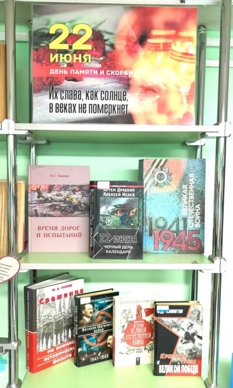 На выставке представлена историко-документальная литература, очерки и воспоминания о начале войны и военных действиях. Так же экспозиция дополнена художественными произведениями российских писателей. Чтение произведений о войне заставляет задуматься о настоящем и прошлом, о жизни и смерти, о мире и войне, учит добру, человечности, справедливости.