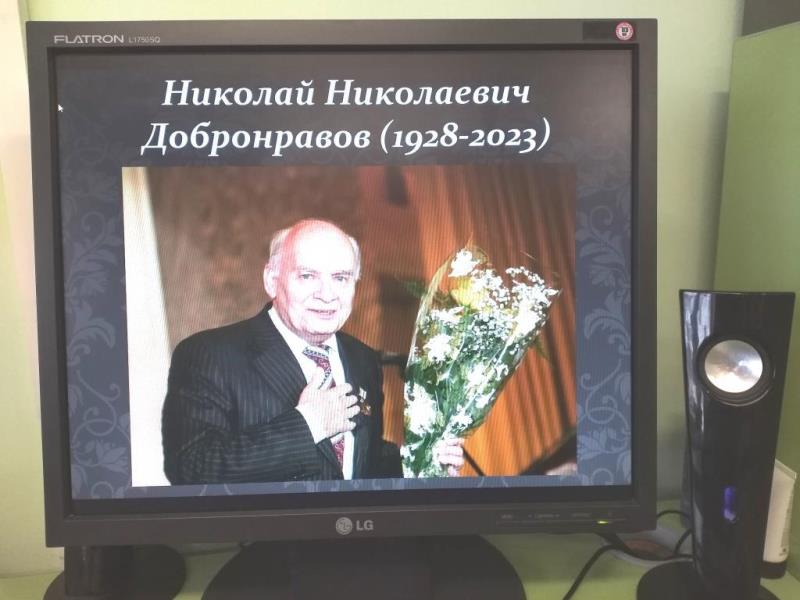 Николай Николаевич Добронравов – советский и российский поэт-песенник, муж Александры Пахмутовой и автор текстов к большинству её песен. В общей сложности поэт создал более 500 песен! 22 ноября 2023 года ему бы исполнилось 95 лет, но за 2 месяца до юбилея – 16 сентября Николая Николаевича не стало. На встрече демонстрировались видеофрагменты песен Николая Добронравова и Александры Пахмутовой: «Мелодия», «Нежность», «Я не могу иначе», «Как молоды мы были», «Птица счастья», «Старый клён», «Команда молодости нашей» «До свиданья, Москва!», «Надежда», «Курская битва». Пенсионеры с удовольствием подпевали любимым исполнителям: Анне Герман, Льву Лещенко, Валентине Толкуновой, Николаю Гнатюку, Муслиму Магомаеву, Майе Кристалинской и другим.