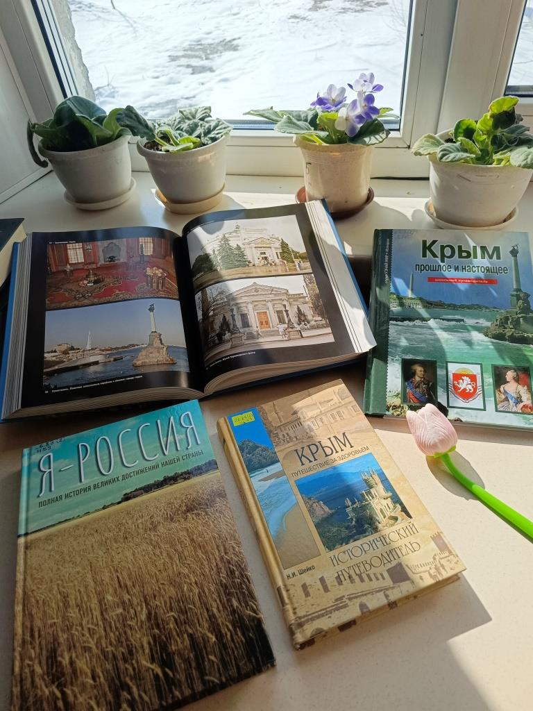 К мероприятию была подготовлена тематическая книжная выставка «Крым и Россия: прошлое и настоящее». Литература, представленная на выставке позволит вспомнить события 2014 года, связанные с возвращением Крыма в состав России, а также познакомит с историческим прошлым Крымского полуострова.
