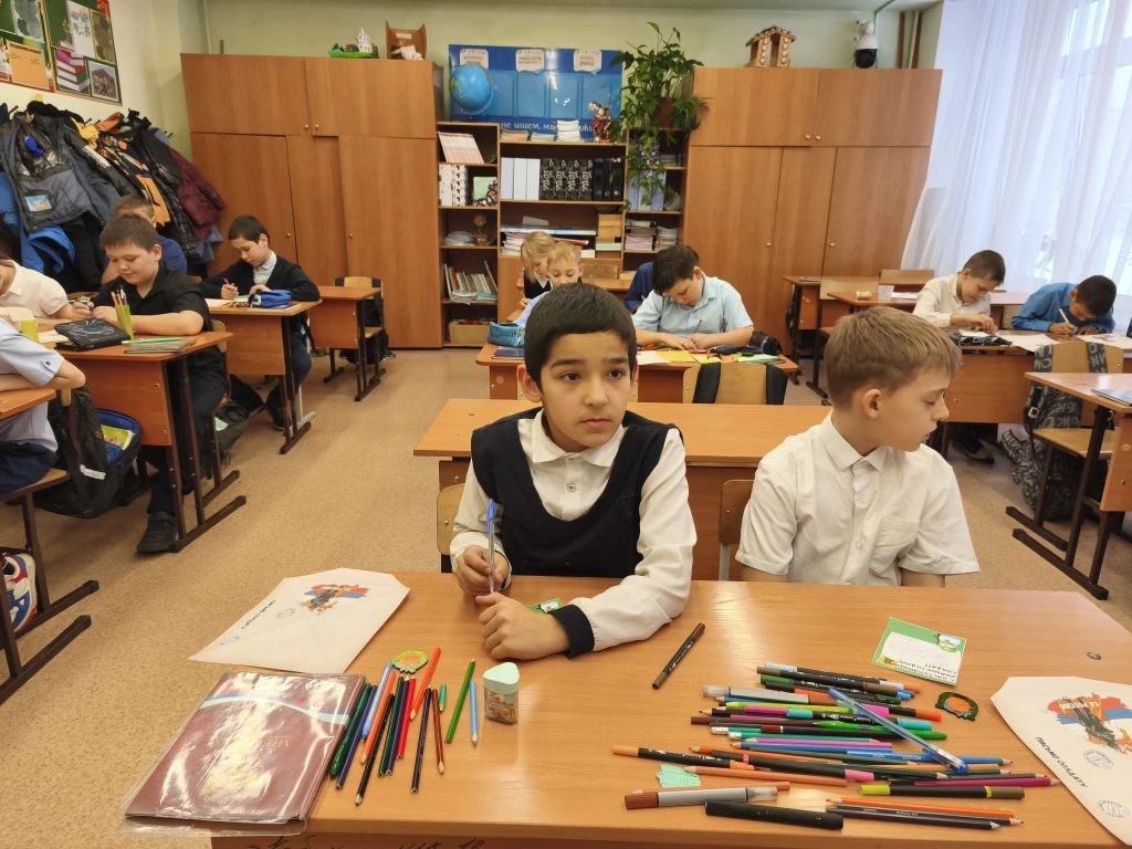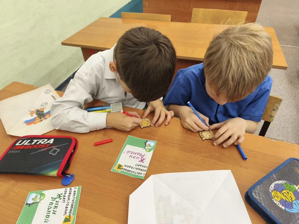 Ученики начальных классов школы №12 совместно с сотрудниками библиотеки «Центр национальных культур» продолжили писать письма с новогодними поздравлениями участникам СВО. Очередная встреча состоялась 5 декабря.