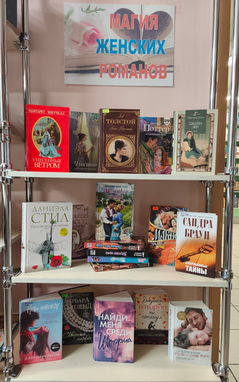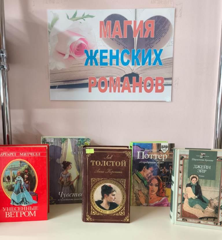Книжная выставка «Магия женских романов» будет действовать с 1 по 20 августа 2025 года.