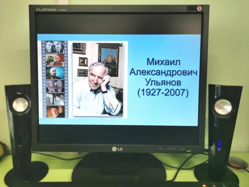 Пенсионеры Дневного пребывания Комплексного Центра социального обслуживания населения послушали о жизни и творчестве Михаила Ульянова. За свою полувековую карьеру Михаил Александрович переиграл военных деятелей и правителей, доносчиков и мерзавцев, драматургов, академиков и простых русских людей. Пресса отмечала, что ему всегда особенно удавались сильные характеры. Результатом многолетней актёрской карьеры Михаила Ульянова стали несколько десятков ролей на сцене и около 70-ти в кино. Как режиссёр, он снял полнометражный кинофильм и поставил не один театральный спектакль, а как писатель – стал автором пяти книг о себе и своей профессии. Демонстрировались слайды с фотографиями М. Ульянова и его семьи, отрывки из фильмов с его участием.
