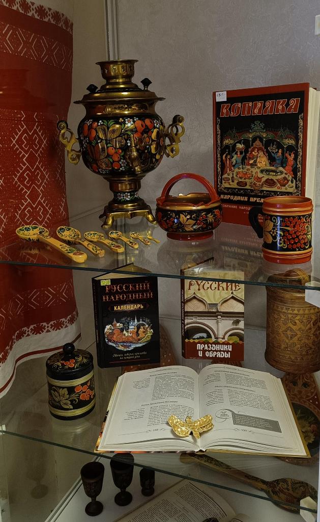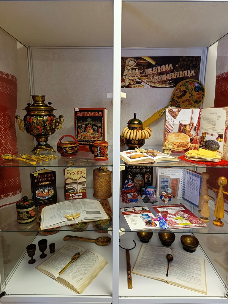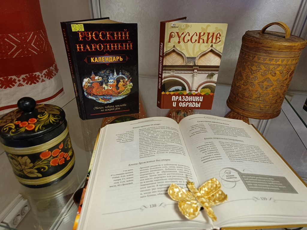 Книжная выставка, посвященная приближающейся масленице открылась в библиотеке «Центр национальных культур».