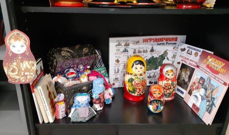 «В каждой избушке – свои игрушки» – это последний раздел выставки. На протяжении многих веков народная тряпичная кукла была самой распространённой игрушкой в России. Здесь представлена литература по изготовлению славянских обережных кукол.