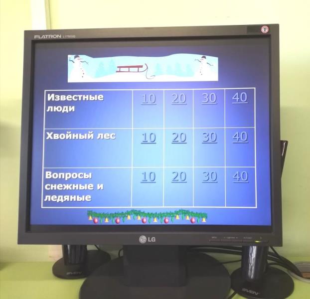 Пенсионеры Дневного пребывания Комплексного центра социального обслуживания населения активно отвечали на вопросы новогодних викторин. Игры включали разделы: «Хвойный лес», «Вопросы снежные и ледяные», «Наше кино», «12 месяцев», «Снегурочка». В заключение встречи, присутствующие послушали несколько песен про зиму и снег.