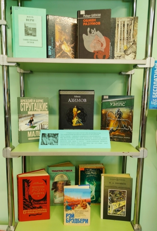 2 января во всем мире отмечают День научной фантастики. Этот неофициальный праздник был приурочен ко дню рождения Айзека Азимова – знаменитого американского писателя-фантаста. Мир фантастики захватывает своей сказочностью, волшебством, победой добра над злом, мистическим сюжетом, возможностью пережить и преодолеть свои страхи, а также научно-техническим прогрессом, вымышленными мирами. Одна из характерных черт этого жанра – некое отрешение от настоящего, реального мира. На выставке представлена литература русских и зарубежных авторов. Многие из них предвосхищали в своих произведениях будущие научные открытия за целые десятилетия до начала реальных исследований.