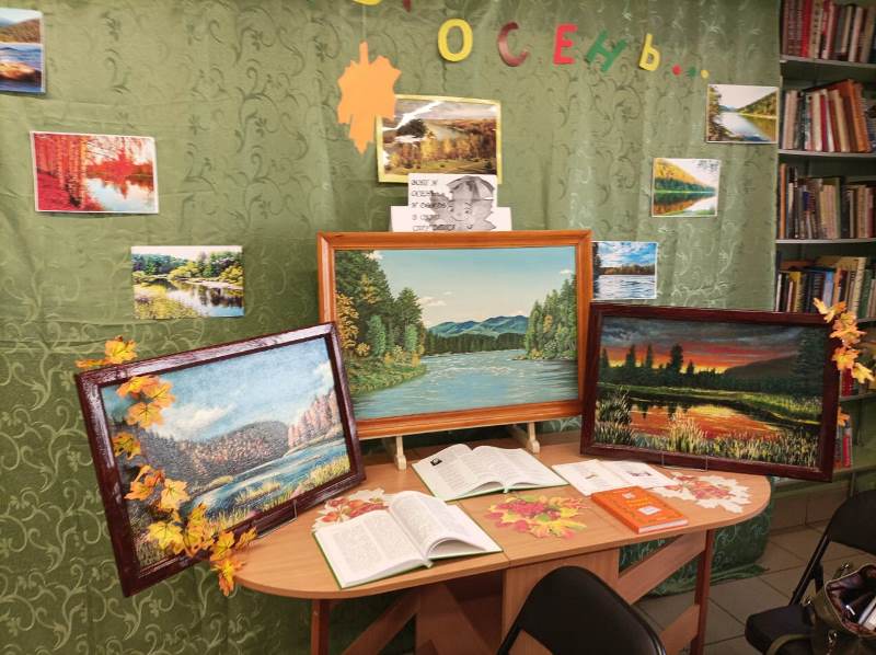Осени поэты посвящали свои стихотворения, а художники – картины. Свои картины на выставке-вернисаже представил Борис Шевцов, а поэты: Китляйн Александра Николаевна, Пешехонова Нина Николаевна, Проскоков Юрий Владимирович, Козликин Александр Васильевич, Шевцова Светлана Викторовна, Тёркина Наталья Александровна – читали свои стихи об осени.