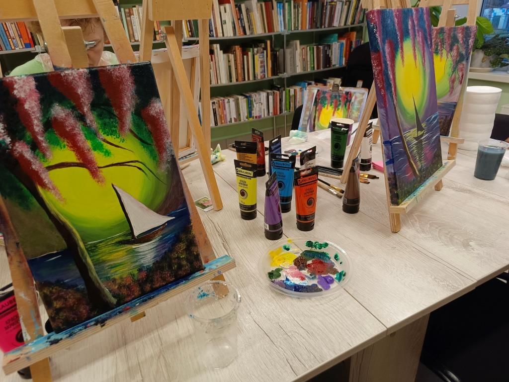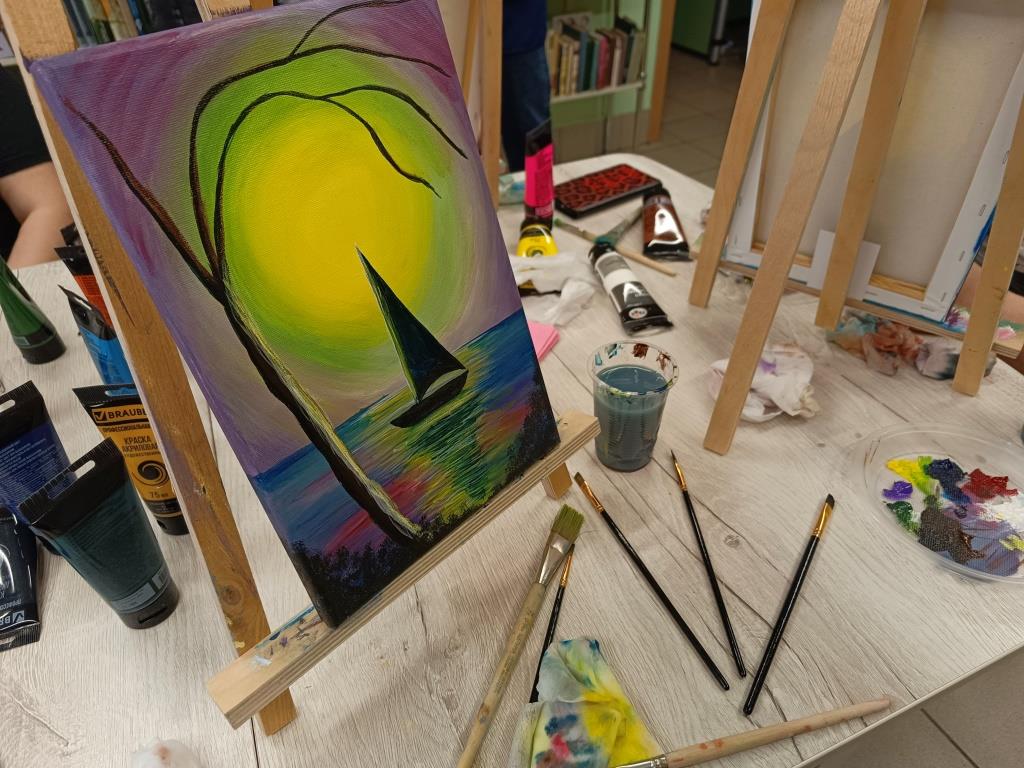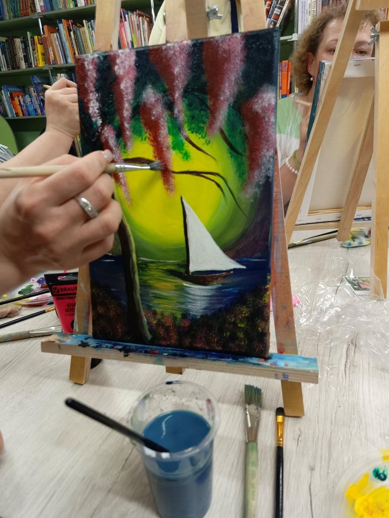 Мастер-класс по правополушарному рисованию «Парусник на закате» состоялся в библиотеке «Центр национальных культур» 28 апреля.