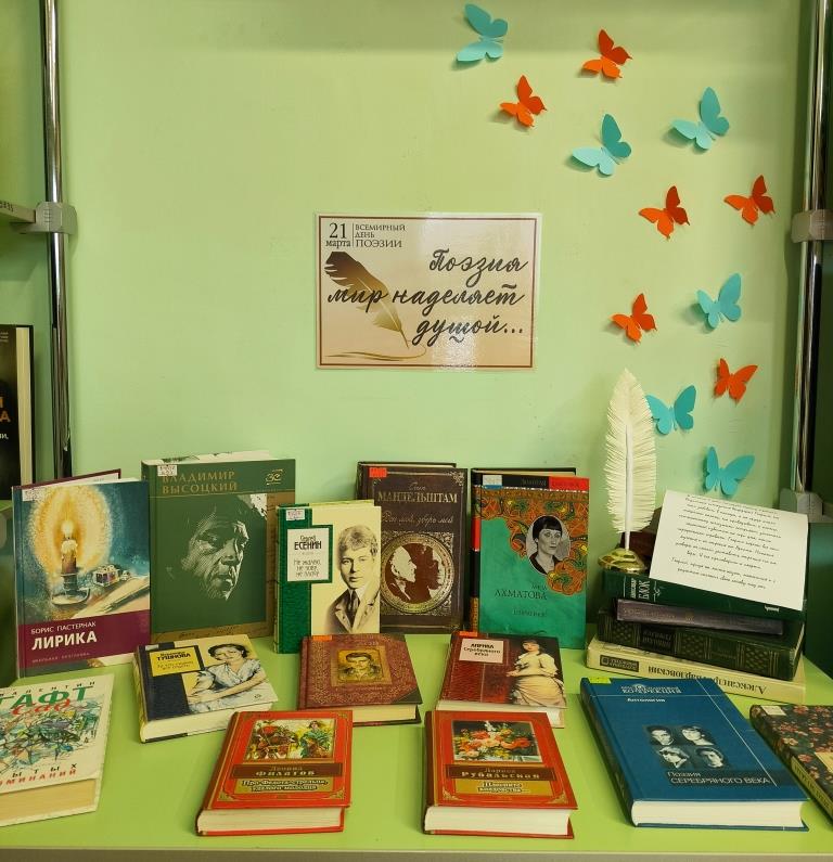 В библиотеке «Центр национальных культур» оформлен книжный просмотр «Поэзия мир наделяет душой».