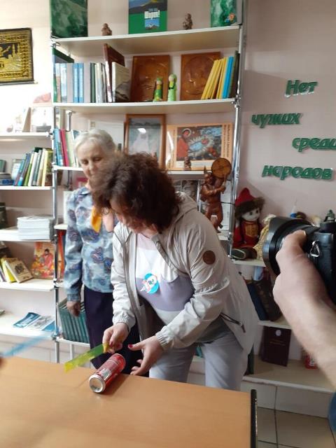 На первой планете книгонавтов ждала опытно-экспериментальная станция «Простая наука в обычных предметах». Профессор около-всяческих наук Елена Нековалевская показала различные физические опыты. Члены экипажа тоже попробовали исполнить их.