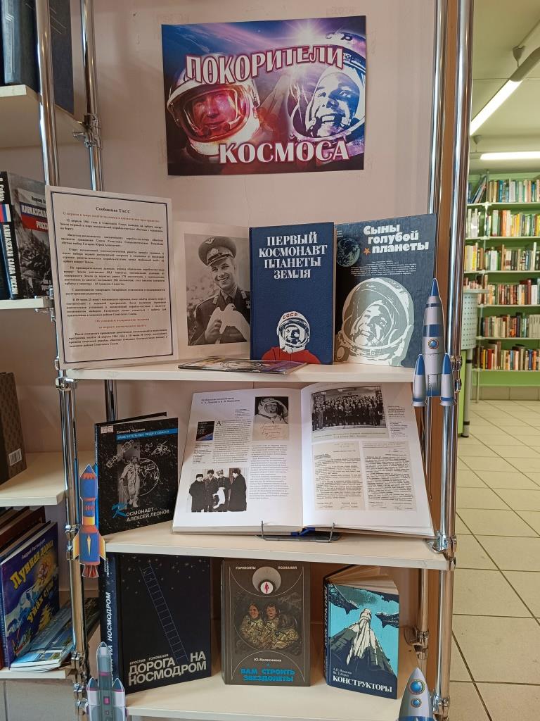 Книжная выставка «Покорители космоса» будет действовать с 2 до 13 апреля 2025 года.