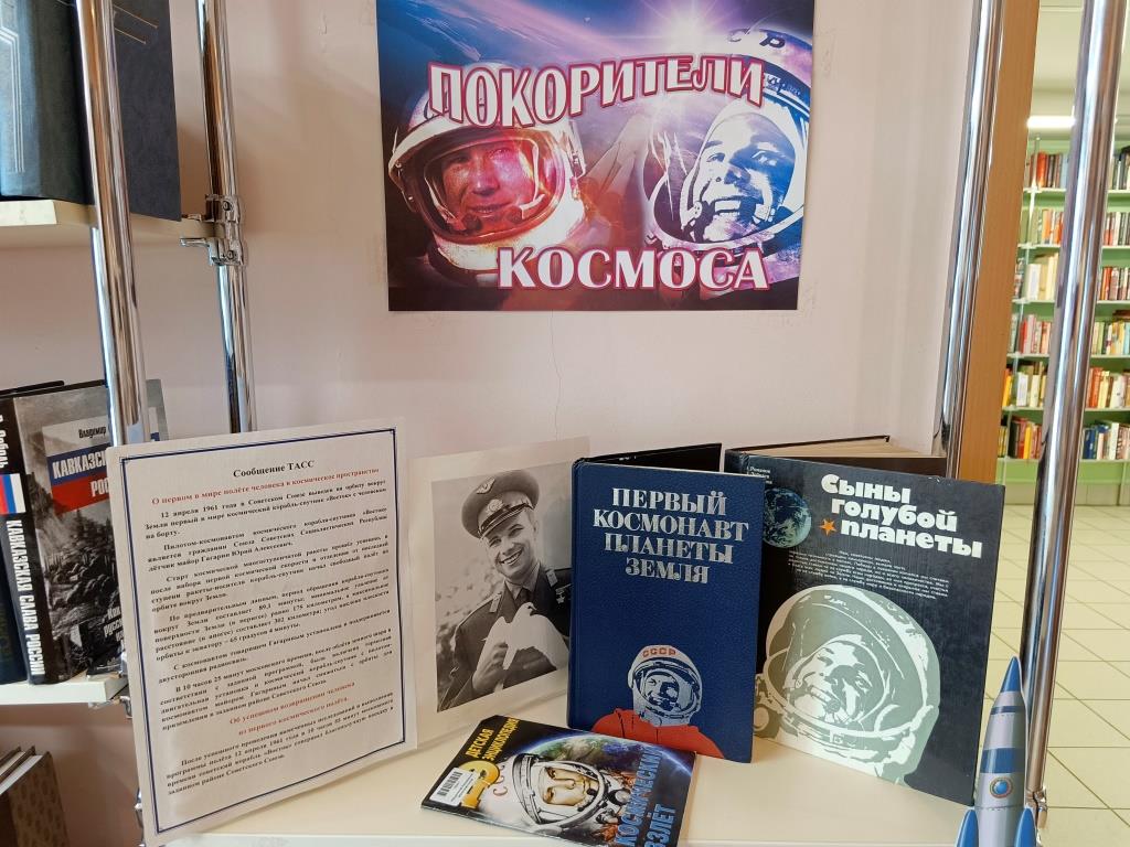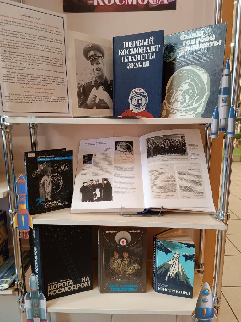 Книжная выставка, посвященная Дню космонавтики, открылась в библиотеке «Центр национальных культур». Выставка «Покорители космоса» рассказывает о первом отряде советских космонавтов и космонавтах-кузбассовцах, которые стали гордостью нашего региона.