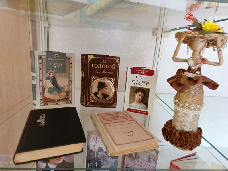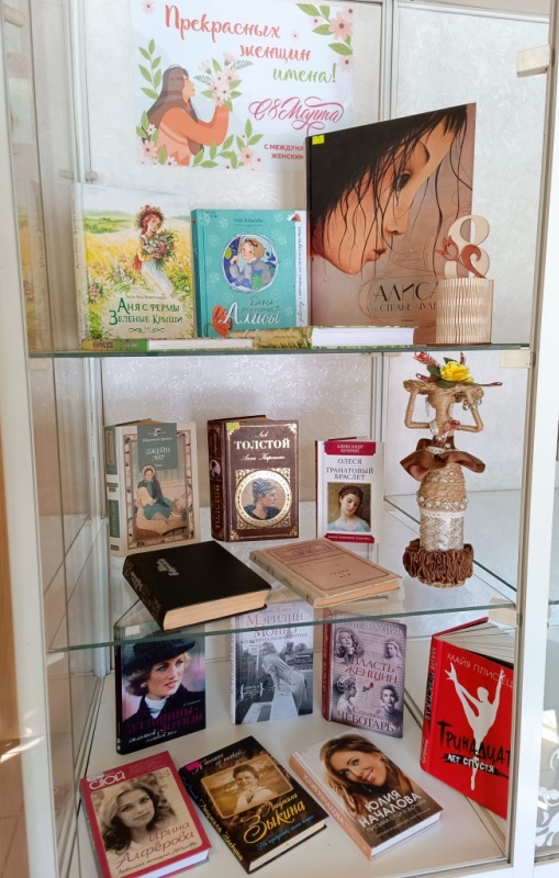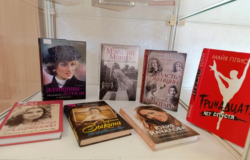 На выставке представлены книги об известных и прекрасных женщинах, оставивших особенный след в истории и культуре России и мира.