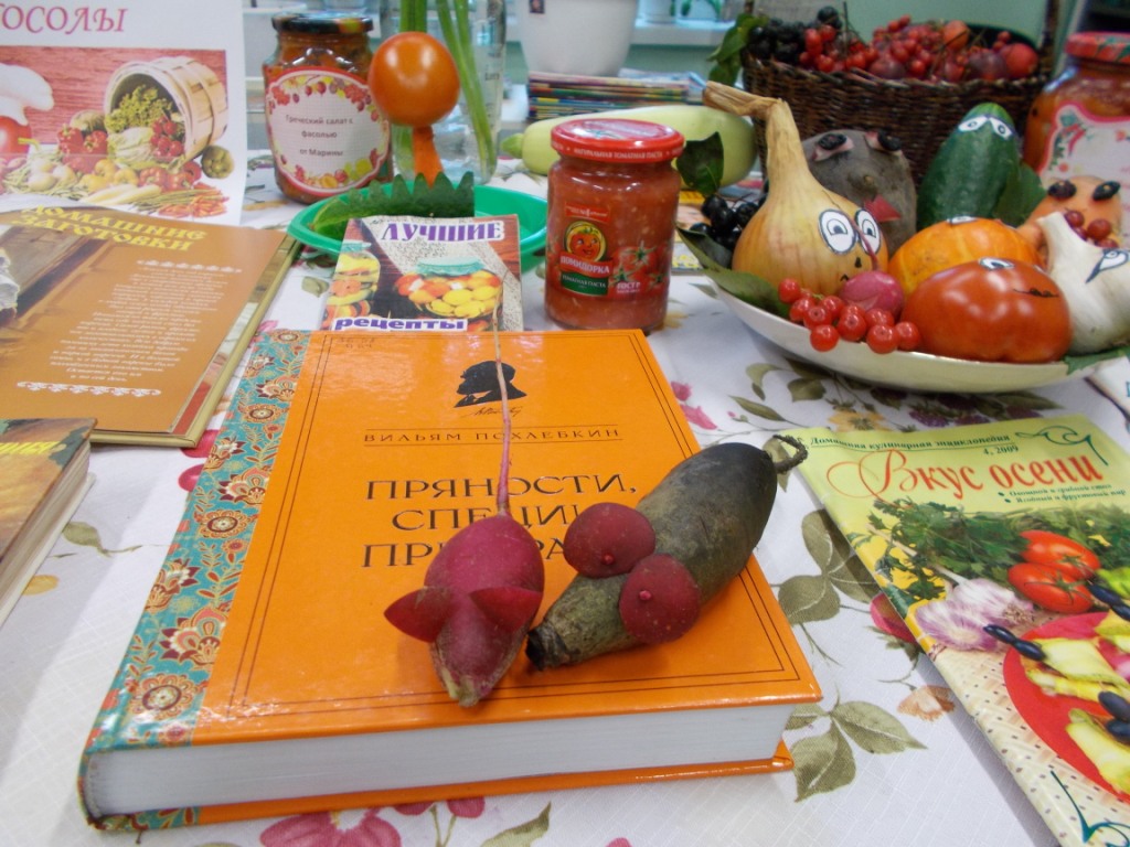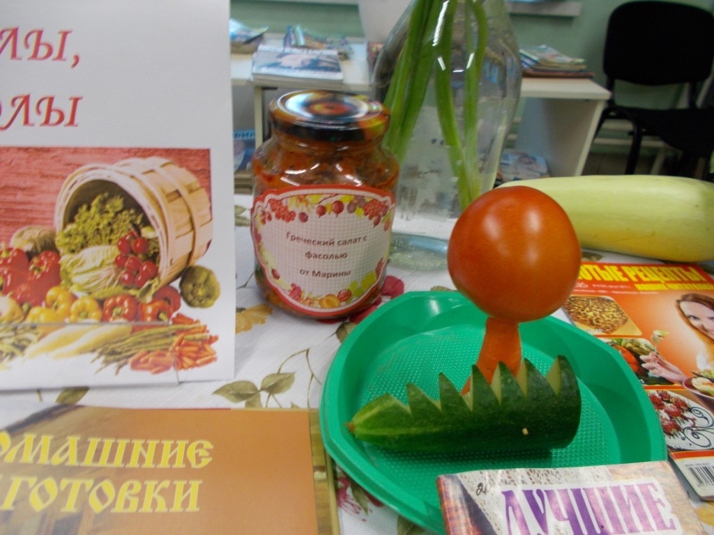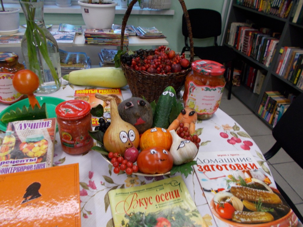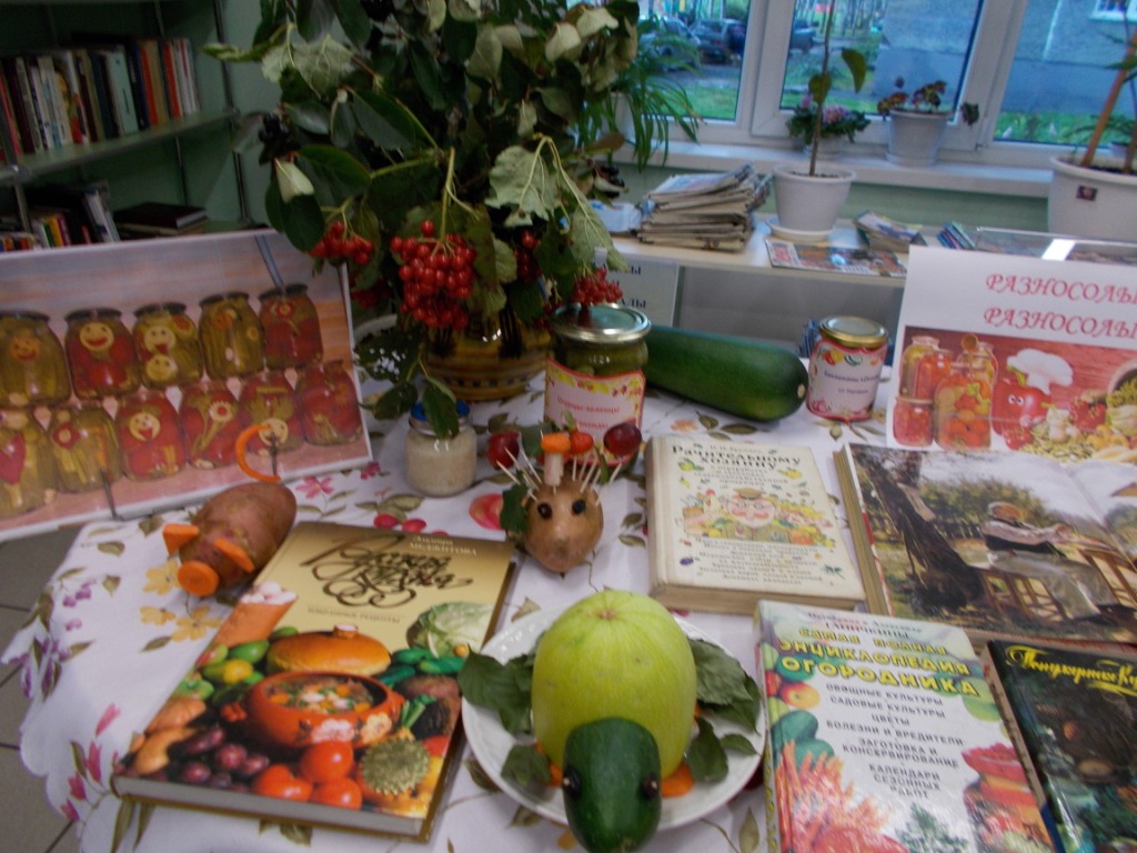 Для читателей представлена литература о хранении овощей и фруктов, о заготовках на зиму, рецепты, интересные вопросы и загадки. Приходите и полюбуйтесь на разнообразие овощей, которые можно вырастить на наших приусадебных участках.