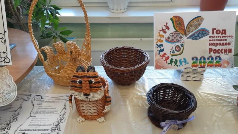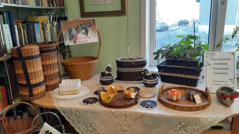 В рамках Года культурного наследия народов России в библиотеке «Центр национальных культур» представлена персональная выставка Шелеповой Светланы. Она работает в технике «плетение из бумажной лозы».