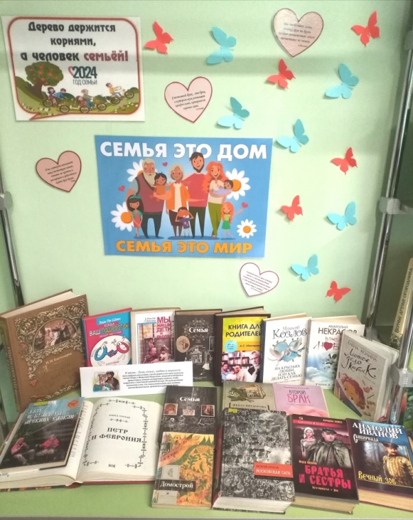 Выставка-просмотр ко Дню семьи, любви и верности «Семья – это дом. Семья – это мир» начала работать в библиотеке «Центр национальных культур».