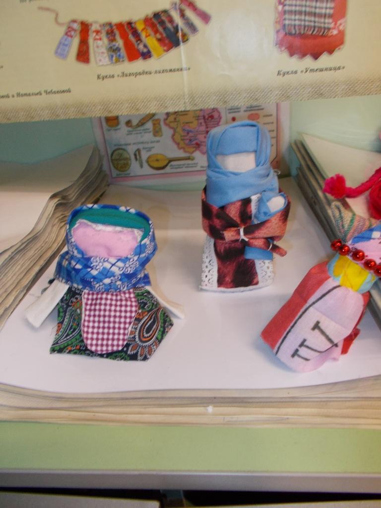 Кукла – это неотъемлемый атрибут древних обрядов, а не только игрушка. Делятся они на три группы – куклы-обереги, игровые, обрядовые. На нашем мероприятии речь шла о куклах-оберегах. Это – кукла-пеленашка, «Куватка», кукла «Бессонница», кукла «12 лихорадок», «Зерновушка», «Подорожница» и другие. Рассказ о куклах сопровождался показом этих кукол, которых изготовила Тёркина Наталья Александровна. Считалось, что чем больше кукол в семье, тем больше счастья. И поэтому библиотека предлагает проведение мастер-классов по изготовлению куколок-оберегов для всех желающих.