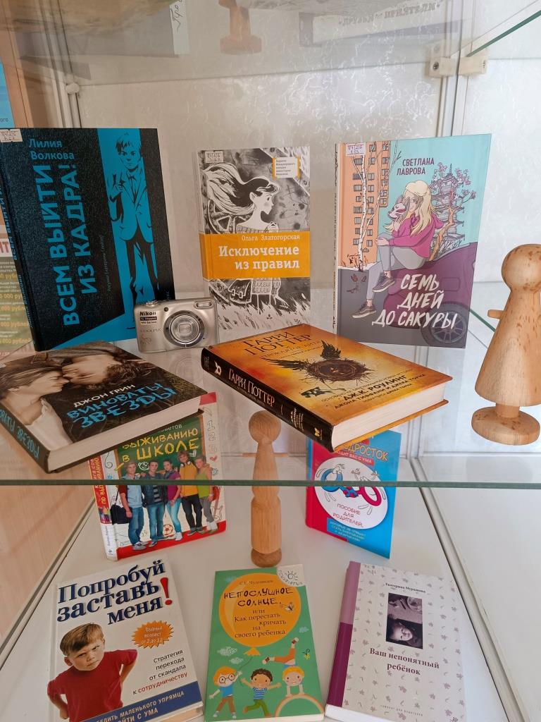 А для взрослых выделена полка с литературой, рассказывающей о психологии подростков и о том, как в сложный период наладить контакт со своими детьми.