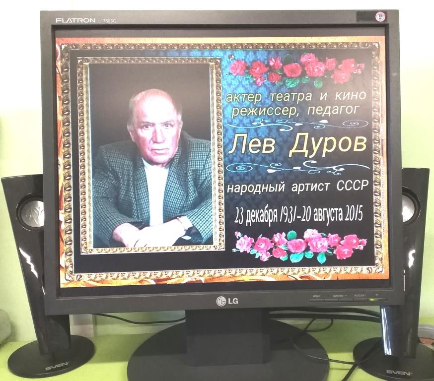 Пенсионерам Дневного пребывания Комплексного центра социального обслуживания населения рассказали, что на сцене этот актёр был талантлив до гениальности, но в жизни оставался очень скромным и простым человеком. Самой лучшей наградой он считал память потомков. Льва Дурова часто называли королём эпизода. Да, он почти не играл главных героев, но его второстепенные персонажи получались такими яркими и самобытными, что порой запоминались больше. Всего в творческой копилке Дурова около 200 ролей в кино и примерно столько же актёрских и режиссёрских работ в театре. А ещё Дуров был непревзойдённым рассказчиком и настоящим мастером художественного слова. Голосом Льва Константиновича говорит Шарик из всеми любимого мультфильма «Каникулы в Простоквашино», а также герои ещё трёх десятков мультипликационных фильмов. Демонстрировались фрагменты из фильмов с участием мастера.