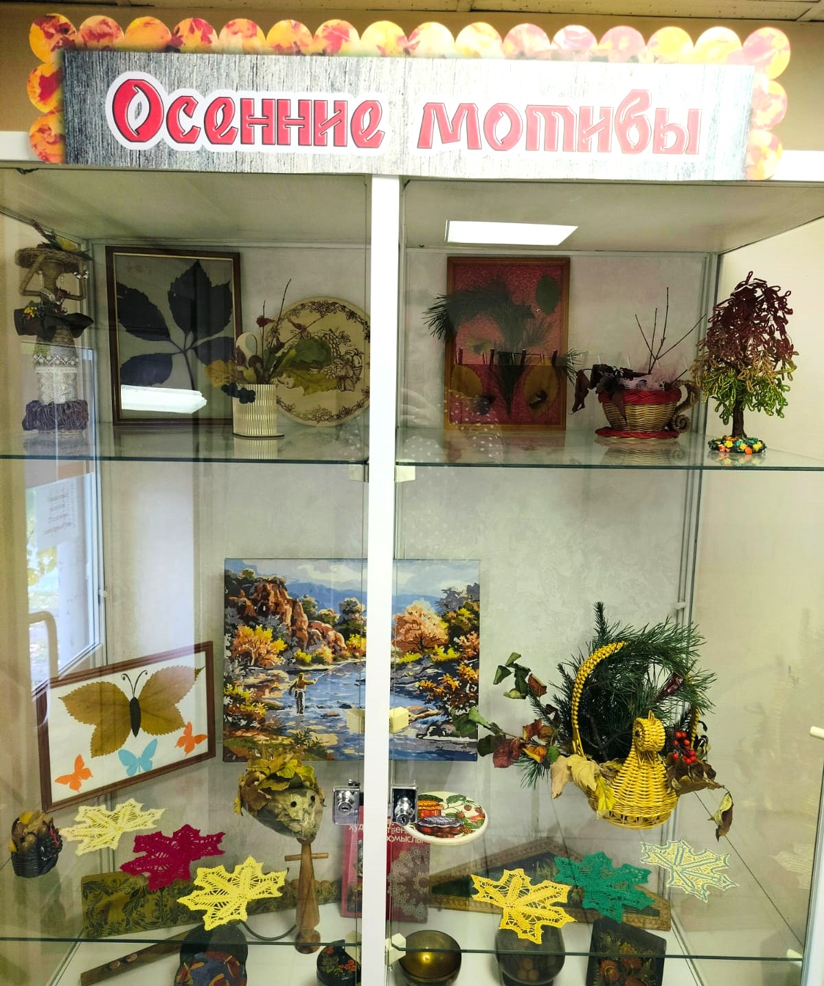 Кто сказал, что осень грустная пора. Осень – это праздник красок! Осень – прекрасное время для творчества! Участницы клуба «Ажиотаж» изготовили разнообразные поделки, коллажи, аппликации из осенних листьев и плодов. Экспозицию украсили картины, изделия из бисера и кружева.