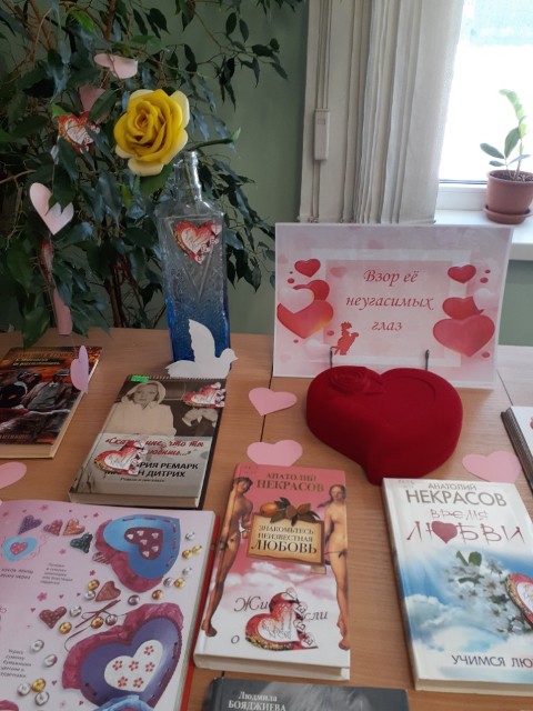 Ко Дню святого Валентина библиотека «Центр национальных культур» приготовила подарок своим читателям – книжную выставку «Взор её неугасимых глаз», на которой представлены как классические произведения российских и зарубежных авторов, так и современные. Все представленные книги посвящены прекрасному чувству, которое помогает пережить все невзгоды и верить в лучшее, – любви.
