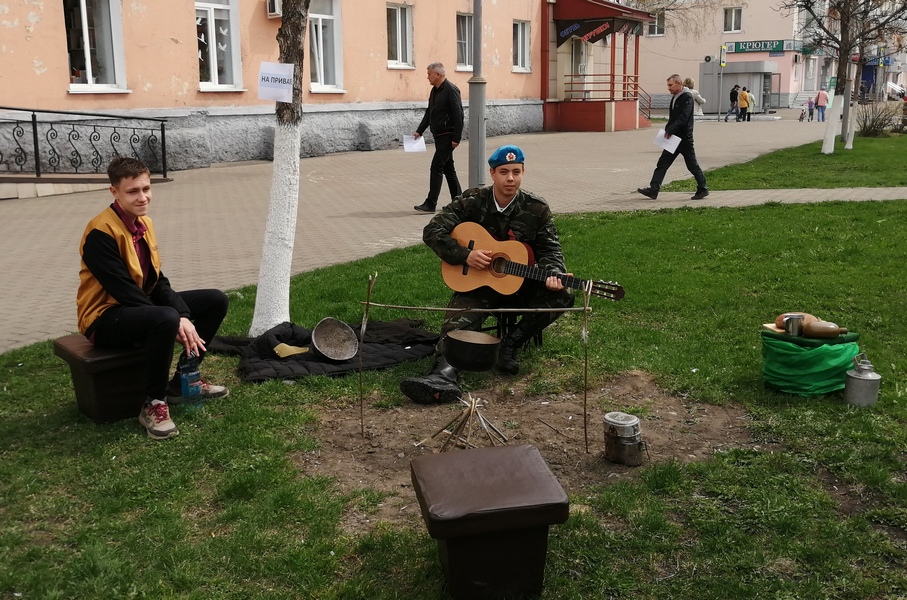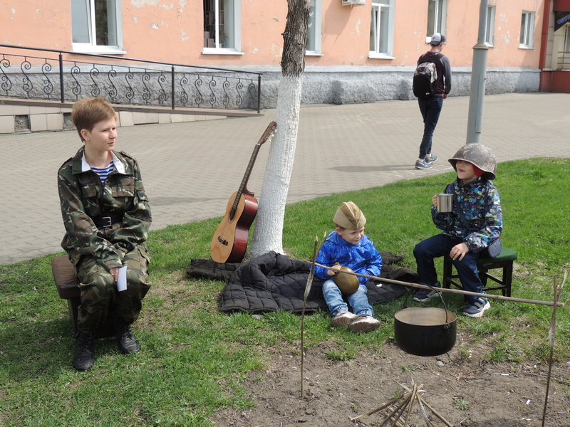 8 мая в 11.00 коллектив Городской детской библиотеки приглашал взрослых и детей принять участие в акции «Вахта памяти», посвящённой Великой Победе. Действия развернулись возле библиотеки, на импровизированном солдатском привале, разместившем костерок и котелок с традиционной солдатской кашей, а также другими предметами солдатского привала.