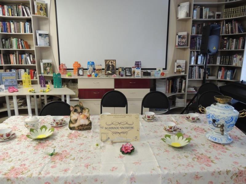 Участники встречи услышали краткую биографию писателя и узнали об особенностях английского уклада жизни того времени. Алиса за чайным столом вспомнила свое путешествие в Страну Чудес и прочитала стихи своей правой туфельке. Шляпник провел игру «Мои мысли», загадал каверзные загадки, а Белый Кролик, который все время куда-то спешил, – шляпную литературную викторину.
