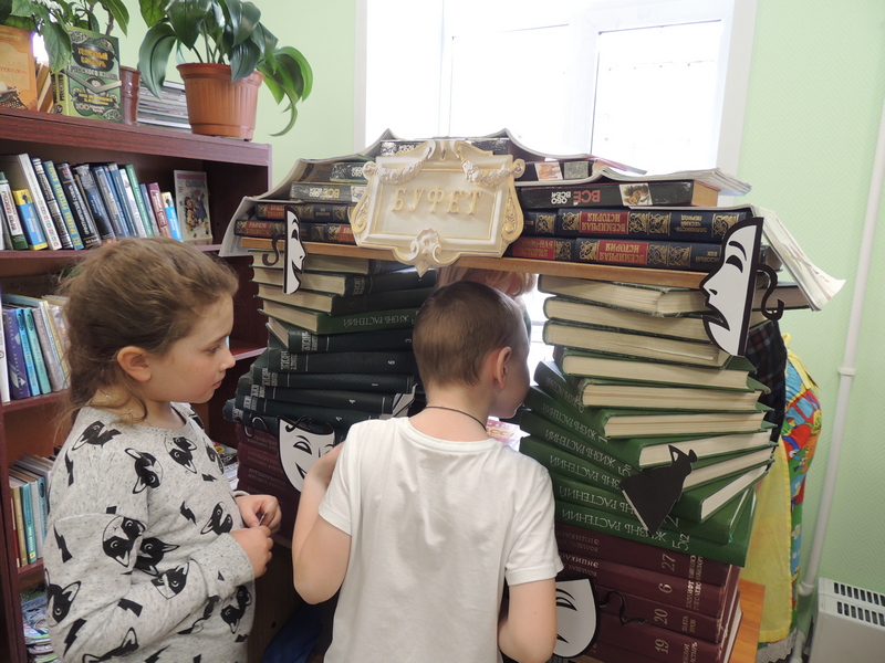 Городская детская библиотека превратилась в небольшую театральную площадку. В режиссёрской дети творчески трудились над собственным сценарием, а затем показали свой кукольный спектакль. В студии звукозаписи шла аудиозапись импровизированных участниками мини-сценок, которые они затем прослушивали. Костюмерная предложила ребятам костюмы любимых литературных героев, а в фотозоне, уже в театральных костюмах, ребята делали фото на память. С большим интересом участники посетили кафетерий «Кроличья нора», куда они могли попасть, лишь преодолев препятствия, затем пили кофе из особых кружек, в которых разместились отрывки из литературных произведений. Каждый посетитель кафетерия старался артистично, ярко передать мысли своих героев, а хозяин данного заведения Кролик оценивал мастерство своих посетителей. Для ребят работала театральная касса, где они приобрели театральные билеты, а также театральный буфет, в котором можно было обменять заработанные жетоны на разные сладости.
