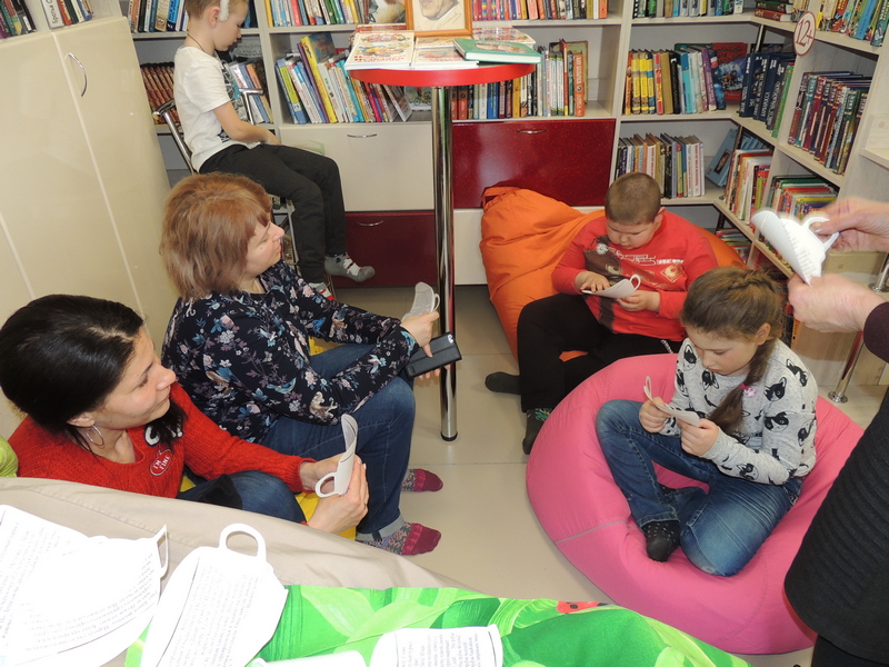 17 апреля библиосумерки состоялись для детей «ОРДИ». Для ребят, по мнению их родителей, это был настоящий праздник. Они с большим желанием переодевались в костюмы литературных героев, разыгрывали маленькие сценки, читали стихи, фотографировались, расположившись в фотозоне. Для ребят состоялся театр на столе, где они попробовали себя в роли артистов, а также стали зрителями кукольного спектакля и делали поделки в творческой мастерской.