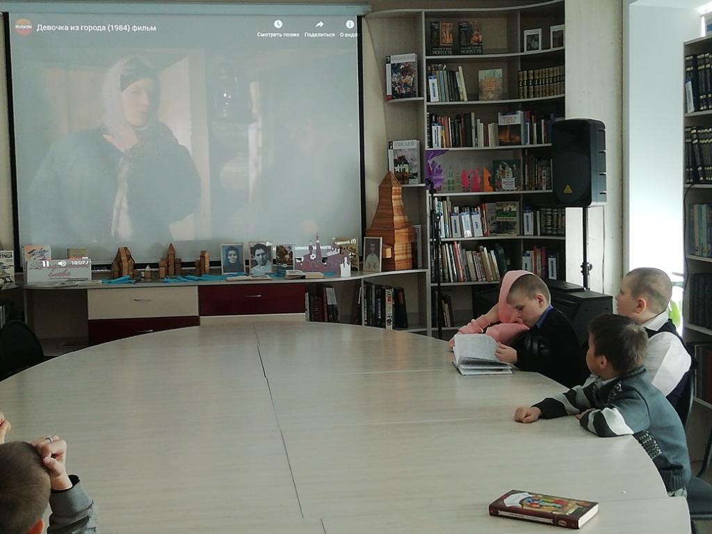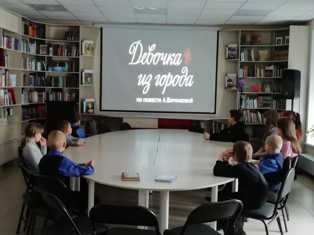 В рамках киногостиной «Читать или смотреть?» 10 марта в Модельной городской детской библиотеке состоялись просмотр и обсуждение фрагмента экранизации повести Любови Воронковой «Девочка из города», снятый в 1984 году советским режиссером Олегом Николаевским.