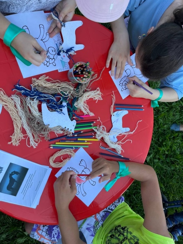 На одной из станций Детская библиотека подготовила ребусы, раскраски, поделки и каждому ребенку подарили закладки.