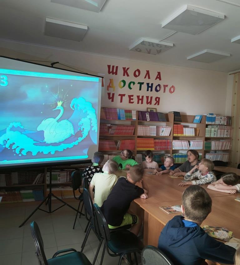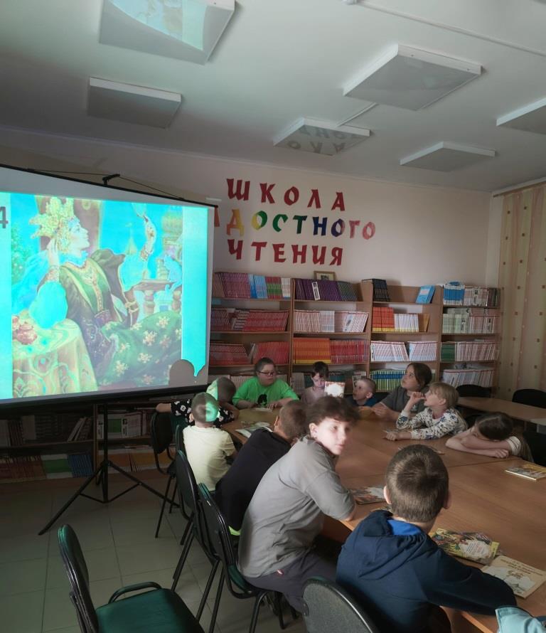 Сначала школьники узнали о детстве и школьных годах Александра Сергеевича, а потом приняли участие в литературной игре «Найди сказку». В ходе игры дети искали подсказки, указывающие на то или иное произведение, выполняли задания и собирали в сундучок предметы, которые позднее были использованы в театральной постановке фрагмента сказки А. С. Пушкина.