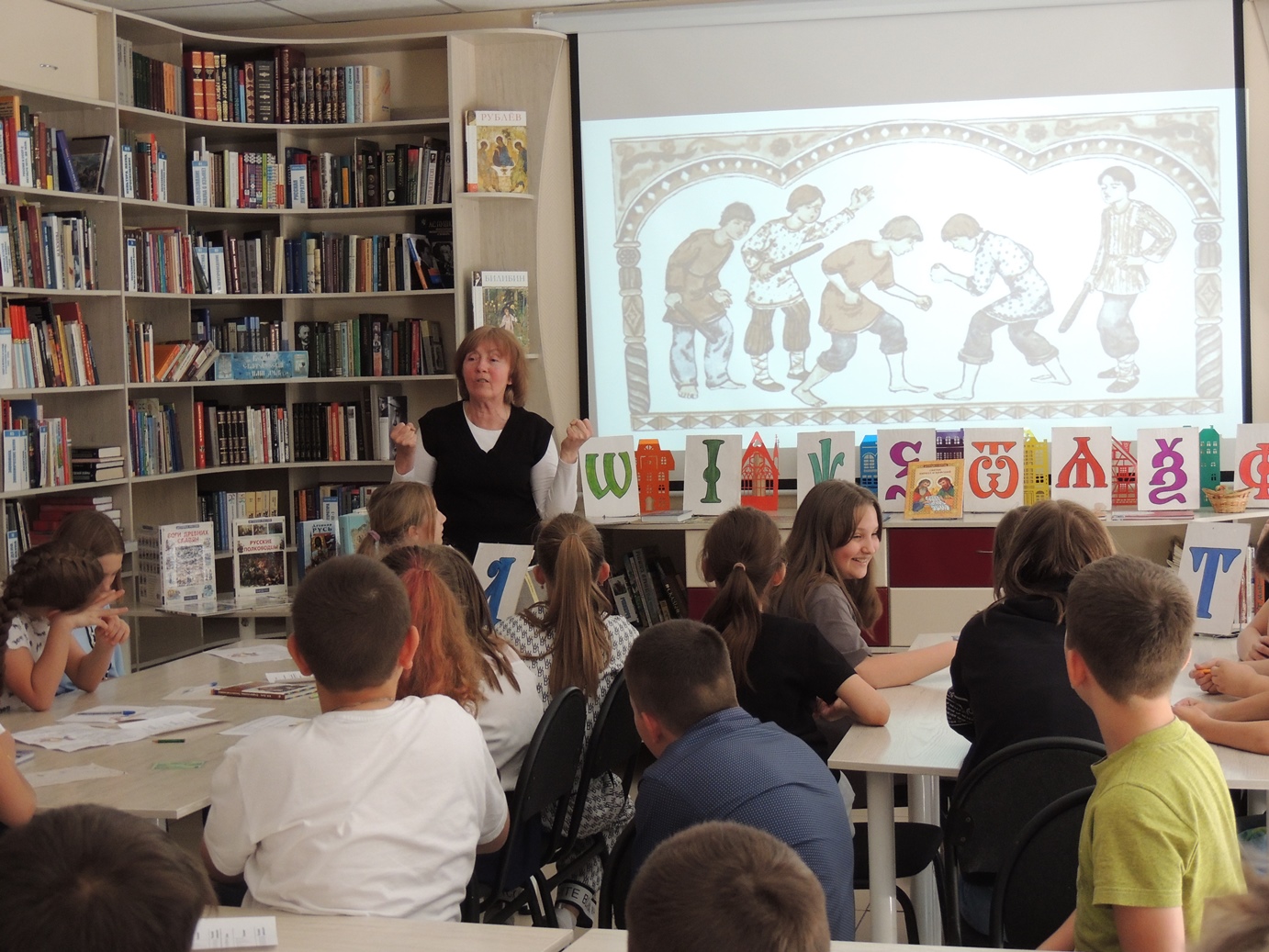 Встреча в стенах библиотеки состоялась в форме уроков в древнерусской школе и называлась «В старину учились дети».