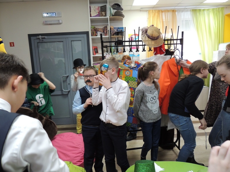 Во время второго перерыва школьники получили возможность попасть в настоящую театральную костюмерную. Для игроков была подготовлена потрясающая фотозона. Ребята могли примерить шляпы, маски, театральные костюмы, ростовые куклы.