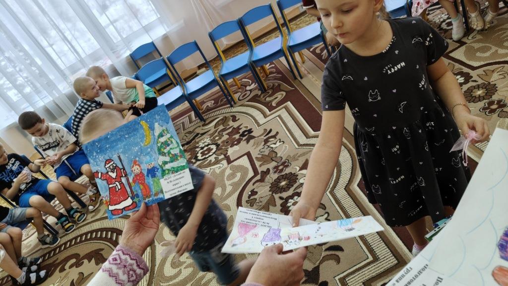 В завершение встречи все получили подарки: библиотекарь – яркие рисунки с изображением деда Мороза, а воспитанники сада – подарочные мешочки с сюрпризом внутри.