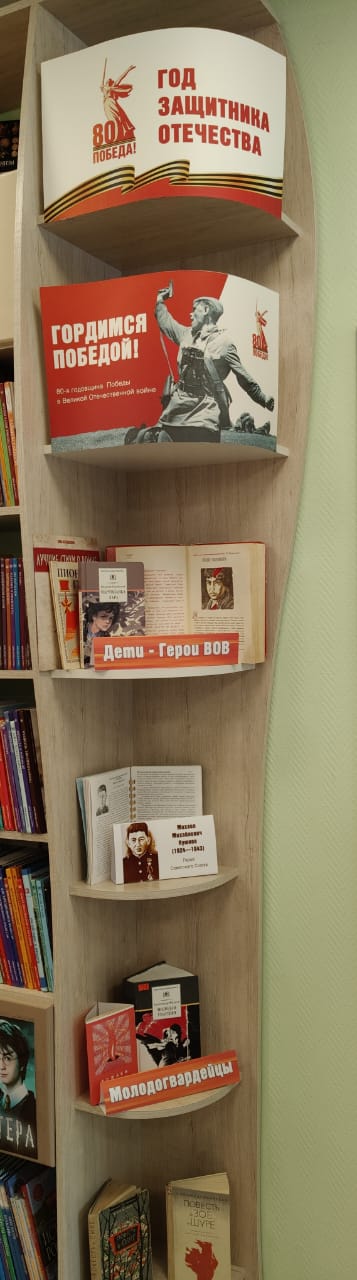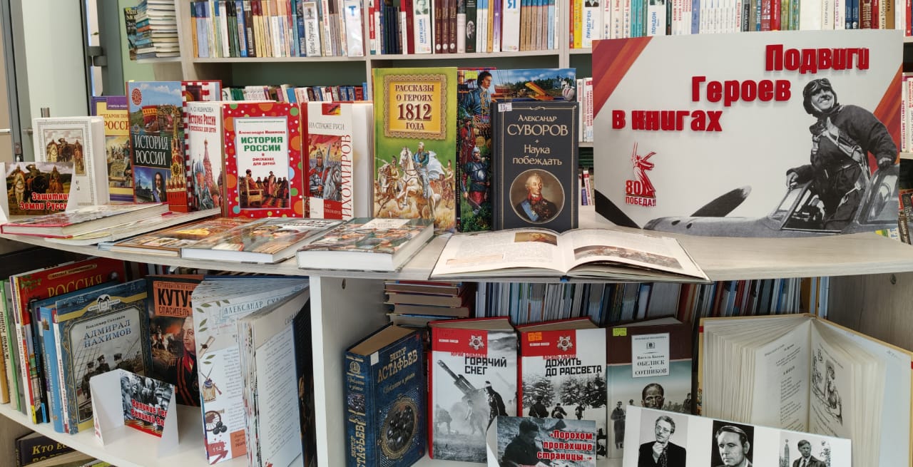 К 80-летию Победы в Модельной городской детской библиотеке оформлена книжная выставка, разделы которой повествует о памятных датах, героях и подвигах.