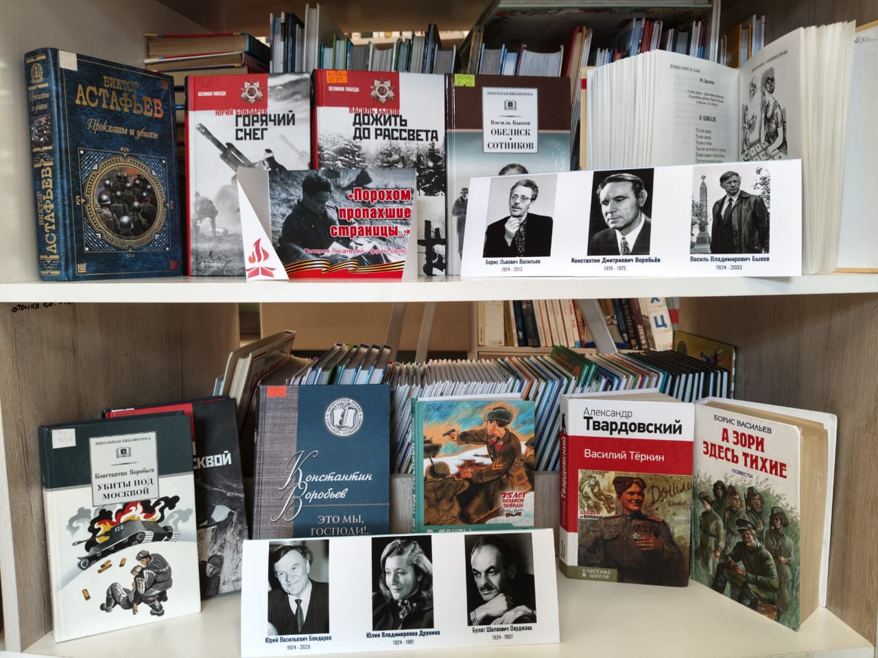 Раздел выставки «Порохом пропахшие страницы...» представляет нам фотогалерею писателей-фронтовиков и их творчество: рассказы, стихи, повести, романы о войне.