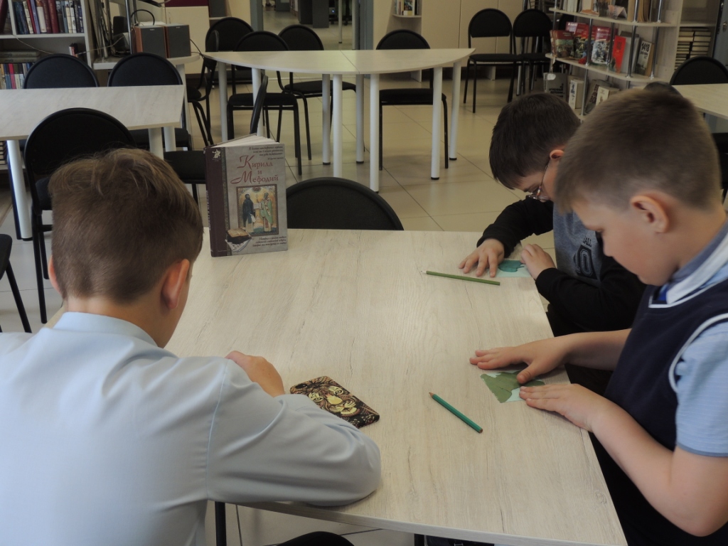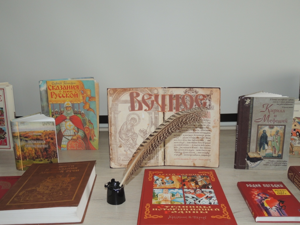 19 мая в Городской детской библиотеке стартовала неделя, посвященная Дню славянской письменности и культуры. В читальном зале старшего отдела оформлена выставка «ВЕЧНОЕ», раскрывающая значение этого замечательного праздника. У выставки проводятся беседы, обзоры, громкие чтения. Для желающих почувствовать себя в роли древнерусского писца, оформителя книг – работает творческая мастерская, где можно изготовить деревянные тетрадки, раскрасить буквицы, придумать иллюстрации к любимым книгам.