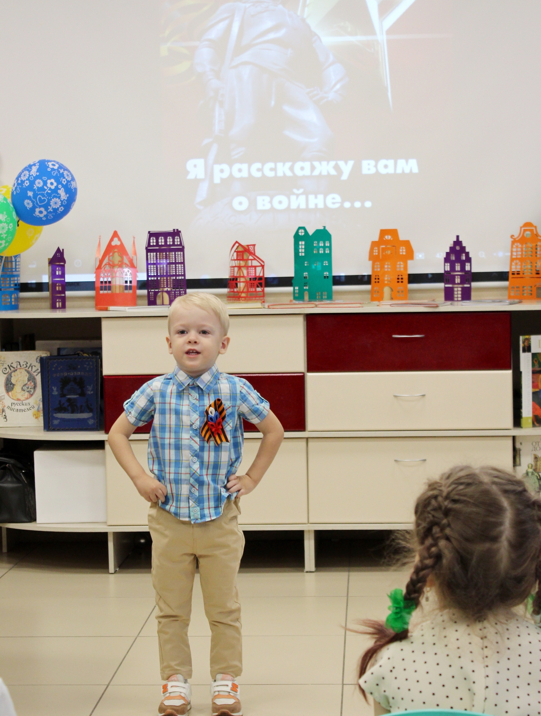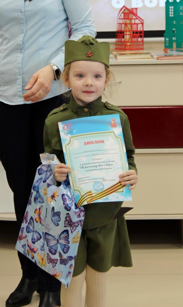 Воспитанники дошкольных учреждений и читатели библиотеки в возрасте от 4 до 7 лет в разных возрастных категориях приняли участие в конкурсе чтецов «Я расскажу вам о войне» в Модельной городской детской библиотеке 24 апреля.