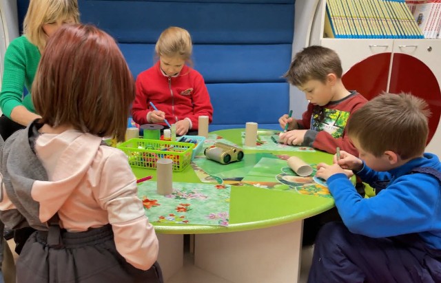 Свои поделки гости библиотеки забрали с собой и гордо надели их поверх верхней одежды, чтобы показать всем прохожим.