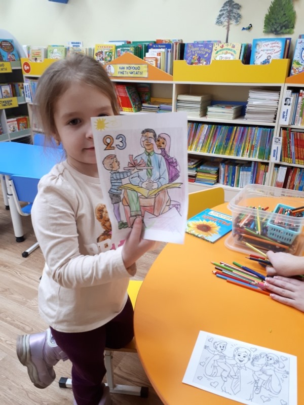 В завершение ребята вместе с родителями смастерили праздничную открытку для папы. А библиотекарь познакомил присутствующих с книжной выставкой «Лучше папы друга нет!».