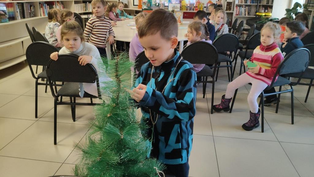 Детей познакомили с историей появления ёлки как символа Нового года и с традицией дарить подарки. В творческой мастерской дошколята наряжали елочку, разгадывали загадки о елочных украшениях, перевоплощались в елочек для музыкальных заданий.
