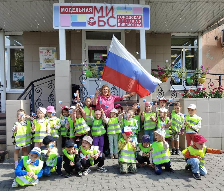21 и 22 августа для воспитанников МДОУ «Детский сад № 13 «Солнышко», а также ребят, посещающих школу раннего развития «Аистенок», состоялись путешествия в историю государственного флага. Дошколята познакомились с историей флага России, узнали значение каждого цвета российского триколора. Затем библиотекарь предложила сыграть в игру: сначала ребятам необходимо было расположить цвета флага в правильном порядке и вспомнить значение каждого цвета, а потом всем вместе дружно выполнить определенные движения.