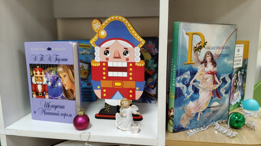 В Модельной городской детской библиотеке работает выставка-инсталляция «Поэзия Рождества», посвящённая Рождеству Христову и Новому году.