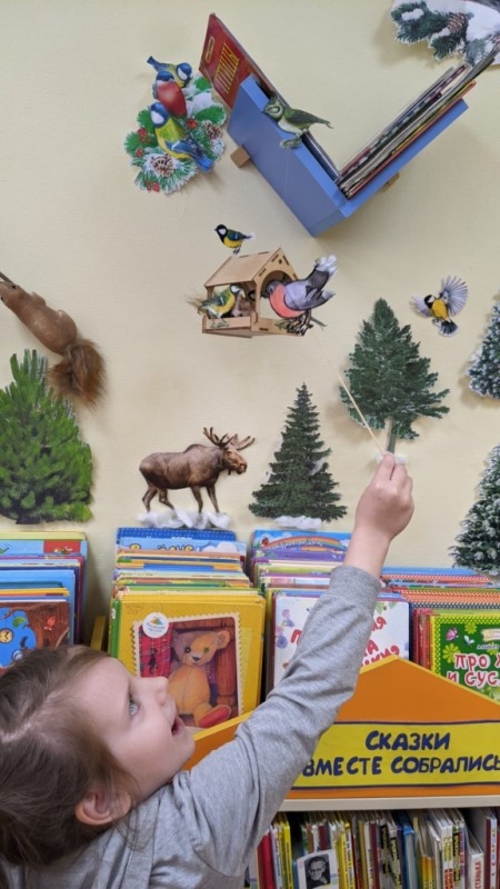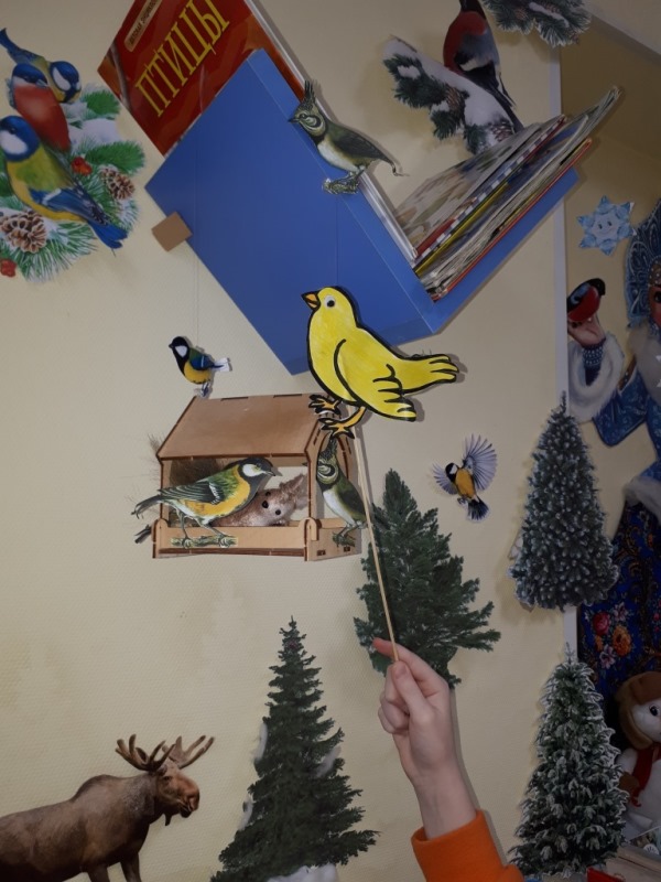 Библиотекарь познакомила ребят с птицами, которые зимуют в нашей области. А дети рассказали, каких птиц знают они. После чего все вместе вспомнили, что любят птицы и что нужно класть в кормушки.