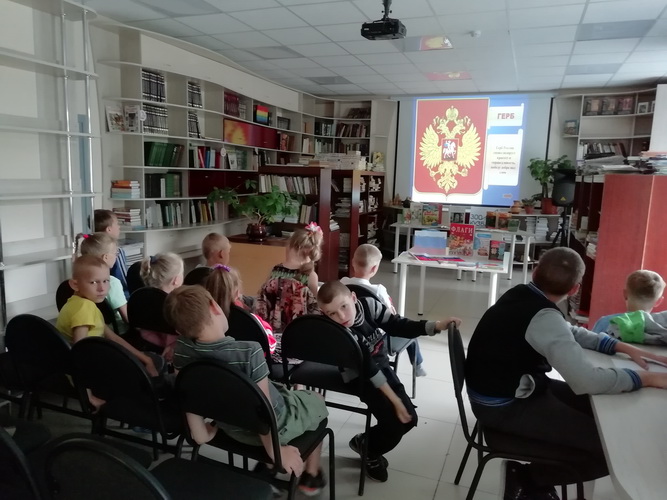 Праздничный день для подростков начался с беседы о символах Российской Федерации и об уважительном отношении к ним. Ребята вспомнили значение каждого из цветов флага. Среди представленных гербов они нашли герб нашей страны, напели государственный гимн и рассказали, где они встречали государственную символику, а также - как надо вести себя во время воспроизведения национального гимна.